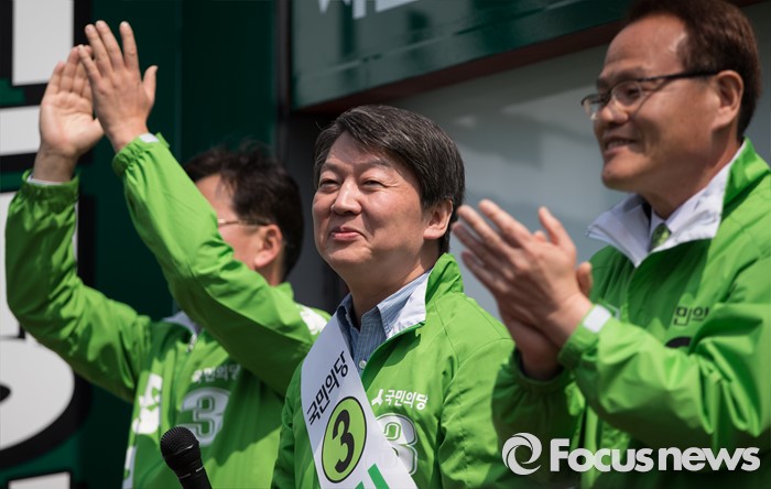 (의정부=포커스뉴스) 안철수 국민의당 상임공동대표(가운데)가 5일 오후 의정부시 태평로 제일시장 앞에서 김경호 의정부갑 후보 지원유세를 하고 있다.