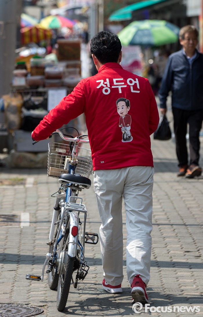 자전거 유세 펼치는 정두언 후보