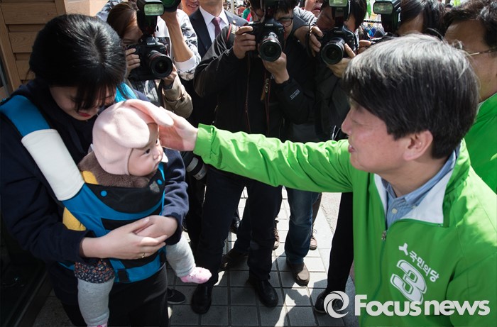 (의정부=포커스뉴스) 안철수 국민의당 상임공동대표가 5일 오후 의정부시 금오동에서 정희영 의정부을 후보 지원유세를 하던 중 한 유권자의 아이를 어루만지고 있다.