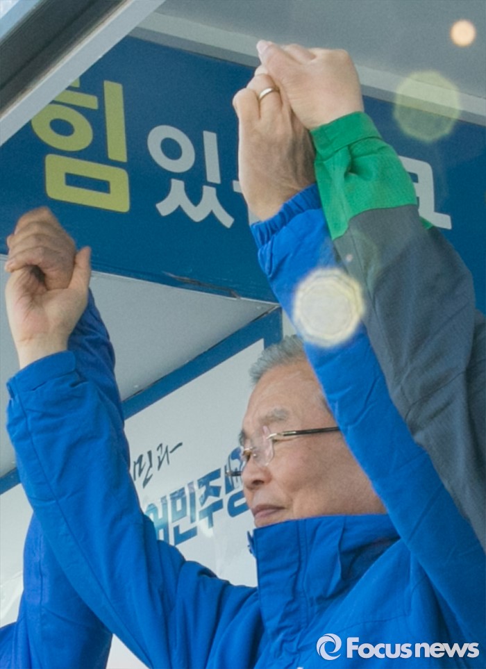 김 대표는 또 "글로벌 경제가 심화될수록 국내 경제 기반이 탄탄히 하지 않으면 안 된다"면서 "우리 생산성 높이고 우리 경쟁력을 높여 우리 상품을 세계 곳곳으로 들어갈 수 있는 여건이 돼야 글로벌 경제의 이익을 볼 수 있다"고 강조했다.5일 오후 경기도 평택역 앞 광장에서 열린 더불어민주당 평택지역 합동유세에 참석한 김종인 비대위 대표 겸 선대위원장이 후보들과 손을 들어 포즈를 취하고 있다. 2016.04.05 박동욱 기자