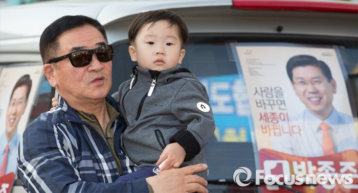 (세종=포커스뉴스) 5일 오후 세종시 조치원읍 조치원역 앞 교차로에서 시민들이 김무성 새누리당 대표의 연설을 바라보고 있다.