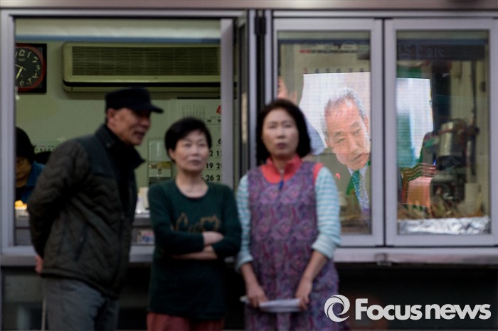 (서울=포커스뉴스) 5일 오후 서울 강남구 개포주공1단지아파트 인근에서 주민들이 20대 총선에 출마한 김종훈 새누리당 강남을 후보의 지지호소를 지켜보고 있다.