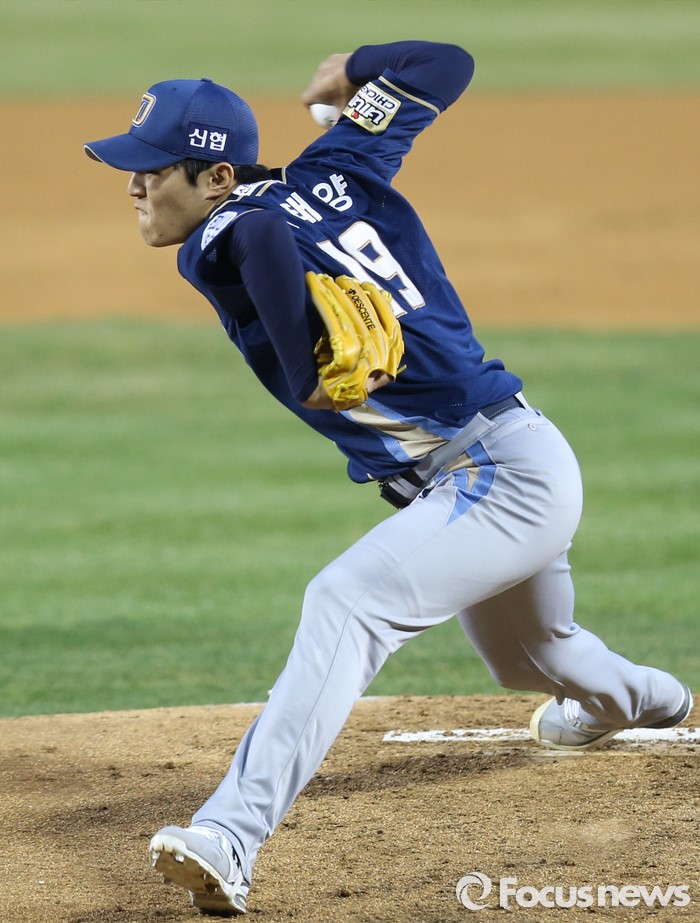 (서울=포커스뉴스) 5일 서울 잠실구장에서 열린 2016프로야구 NC-두산 경기에서 2회말 NC 선발투수 이태양이 투구하고 있다.