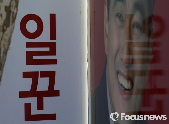 (서울=포커스뉴스) 5일 오후 서울 관악구 김한의원 앞에서 오신환 새누리당 관악구을 후보가 선거유세를 하고 있다.