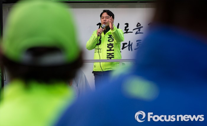 (서울=포커스뉴스) 5일 오후 서울 중구 충정로역 인근에서 선거유세에 나선 정호준 국민의당 중구성동구을 후보가 유권자들의 지지를 호소하고 있다.