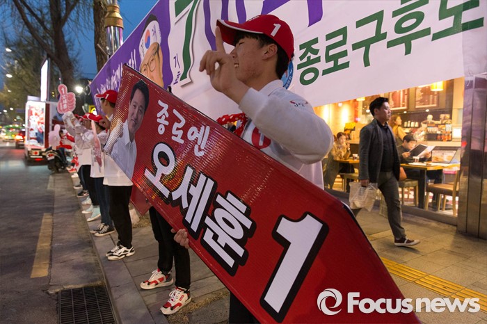 (서울=포커스뉴스) 20대 총선을 8일 앞둔 5일 오후 서울 종로구 통인시장 일대에서 오세훈 새누리당 종로구 후보가 퇴근길 선거유세를 하고 있다.