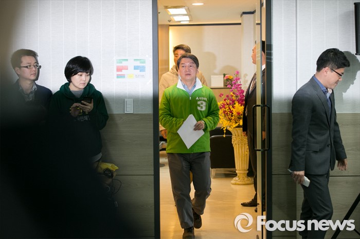(서울=포커스뉴스) 안철수 국민의당 대표가 6일 오전 서울 마포구 당사 브리핑실에서 기자회견을 위해 입장하고 있다. 이 자리에서 안 대표는 "3당 원내교섭단체 대표가 국민 앞에서 공개적인 TV토론을 열고, 각 당의 위기해법과 미래비전을 검증받을 것을 공식제안한다"며, "정의당의 참여도 반대하지 않는다"고 말했다.