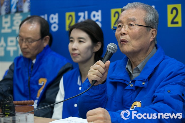 (서울=포커스뉴스) 6일 오전 진영 더불어민주당 서울 용산구 후보 선거사무소에서 열린 중앙선거대책위원회의에 참석한 김종인 비대위 대표 겸 선대위원장이 모두발언을 하고 있다.