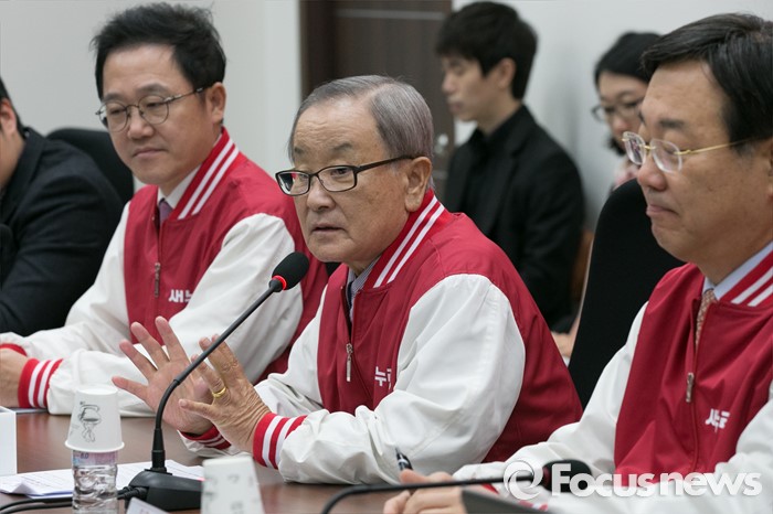 (서울=포커스뉴스) 강봉균(가운데) 새누리당 공동선대위원장이 6일 오전 서울 여의도 국회에서 경제정책 공약 5호를 발표하고 있다.