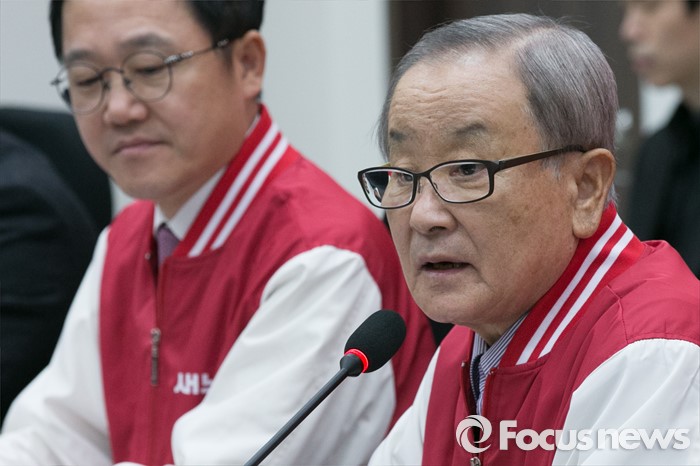 (서울=포커스뉴스) 강봉균(오른쪽) 새누리당 공동선대위원장이 6일 오전 서울 여의도 국회에서 경제정책 공약 5호를 발표하고 있다.