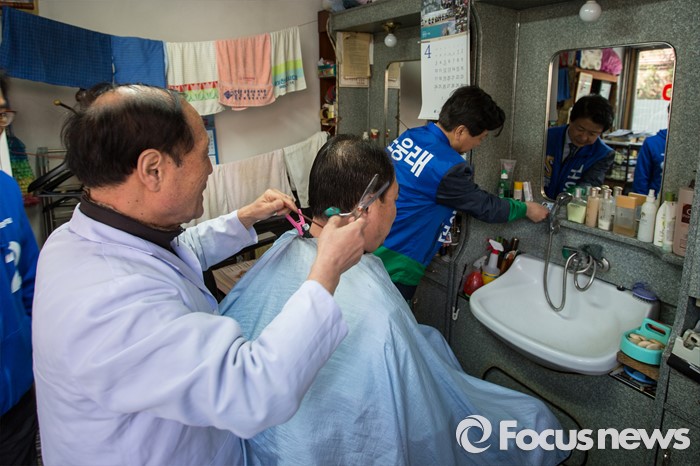 (서울=포커스뉴스) 노웅래 더불어민주당 마포구갑 후보가 6일 오전 서울 마포구 공덕동 일대에서 선거운동을 하고 있다.