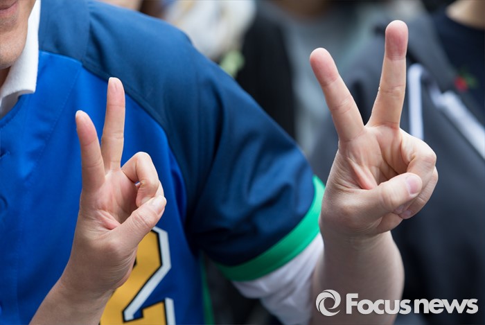 (용인=포커스뉴스) 6일 오전 경기 용인 기흥구 보정동 인근에서 문재인 더불어민주당 전 대표가 표창원 더민주 용인시정 후보 지원유세를 하고 있다.