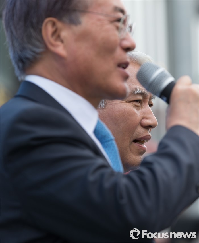 (용인=포커스뉴스) 6일 오후 경기 용인 처인구 김량장동 롯데시네마 앞에서 백군기 더민주 용인시갑 후보가 지원유세에 나선 문재인 전 대표의 유세연설을 듣고 있다.