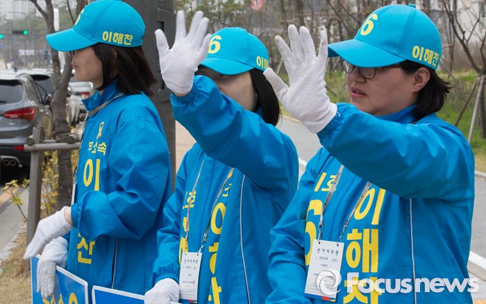 (세종=포커스뉴스) 이해찬 무소속 후보가 6일 오후 세종시 도담동 중앙타운 네거리에서 지지를 호소하고 있다.