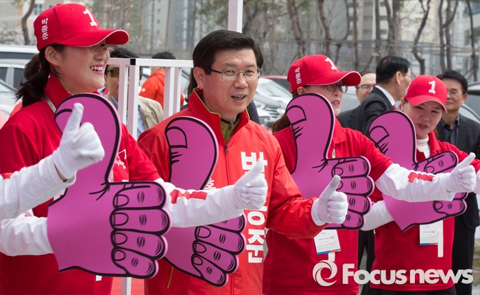 (세종=포커스뉴스) 박종준 새누리당 후보가 6일 오후 세종시 어진동 정부세종청사 인근에서 지지를 호소하고 있다.
