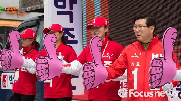 (세종=포커스뉴스) 박종준 새누리당 후보가 6일 오후 세종시 어진동 정부세종청사 인근에서 지지를 호소하고 있다.