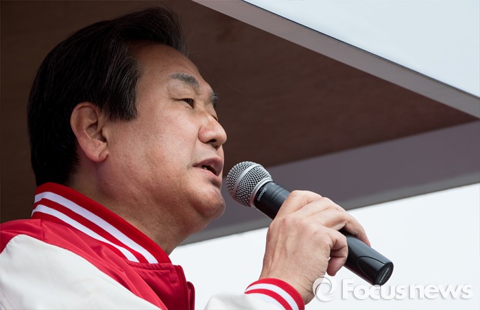 (당진=포커스뉴스) 6일 오후 충남 당진 구 버스터미널 사거리에서 김무성(오른쪽) 새누리당 대표가 김동완 당진시 후보 지원유세를 하고 있다.