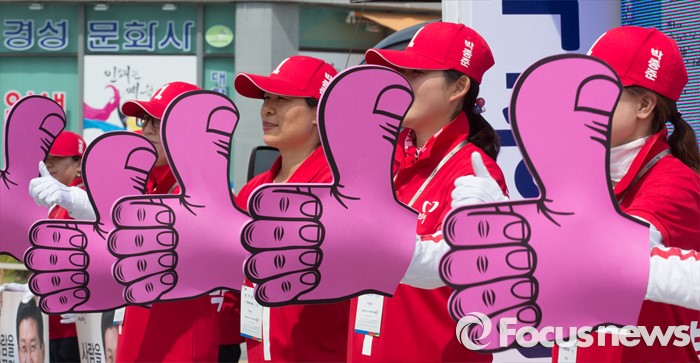 (세종=포커스뉴스) 박종준 새누리당 후보 선거운동원들이 6일 오후 세종시 어진동 정부세종청사 인근에서 지지를 호소하고 있다.