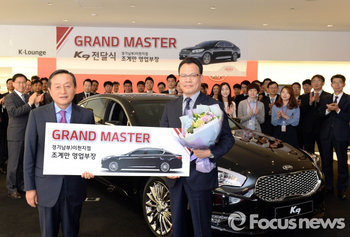 (서울=포커스뉴스) 기아자동차는 서울 압구정동 기아차 사옥에서 누적판매 4000대를 기록한 조계만 기아차 영업부장에게 '그랜드마스터' 칭호와 함께 부상으로 K9 차량을 수여했다고 6일 밝혔다.