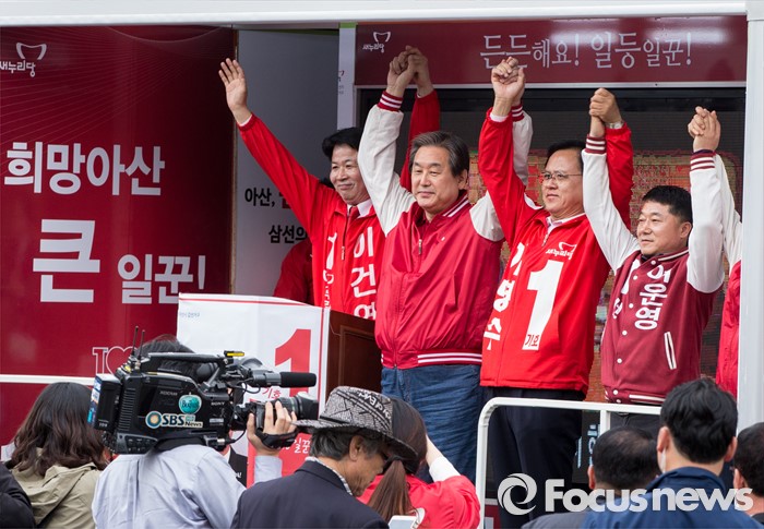 | △ 이명수 후보 손잡은 김무성 |