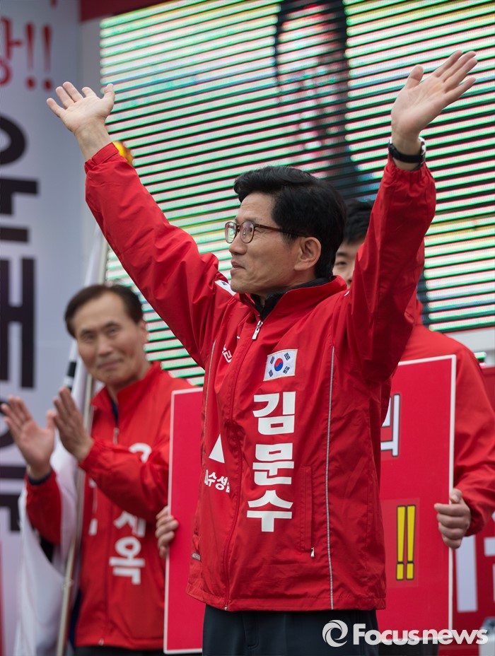 (대구=포커스뉴스) 김문수 새누리당 수성구갑 후보가 6일 오후 대구광역시 달서구 성당동 일대에서 열린 대구지역 후보자 총집결 거리유세에서 유권자들에게 인사하고 있다.