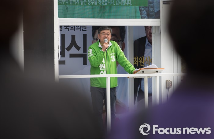 (인천=포커스뉴스) 제20대 총선에 출마한 최원식 국민의당 계양을 후보가 6일 오후 인천 계양구 계산역 앞에서 선거운동을 하고 있다.