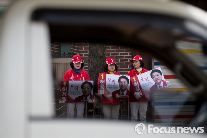 (서울=포커스뉴스) 6일 오후 서울 동대문구 제기동 일대에서 허용범 새누리당 동대문구갑 후보 선거운동원들이 선거운동을 하고 있다.