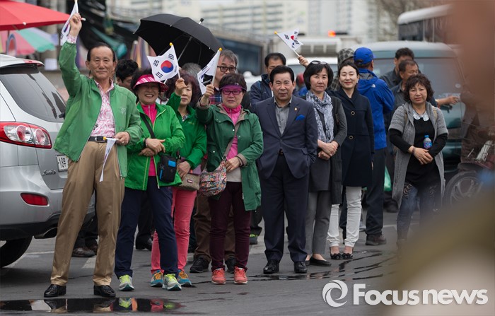 (대구=포커스뉴스) 유승민을 비롯한 대구 무소속 후보들을 지지하는 유권자들이 6일 오후 대구광역시 북구 칠성시장 앞에서 유승민, 권은희, 류성걸 무소속 후보 합동 유세를 지켜보고 있다.