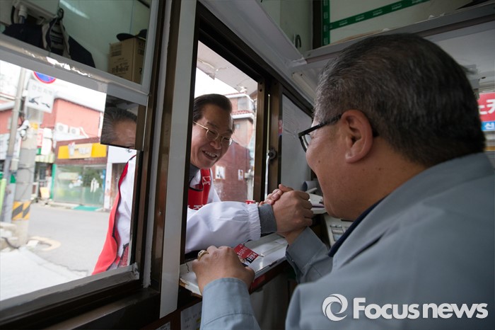 (서울=포커스뉴스) 6일 오후 서울 영등포구 대림1동 일대에서 권영세 새누리당 영등포구을 후보자가 유세를 하고 있다.