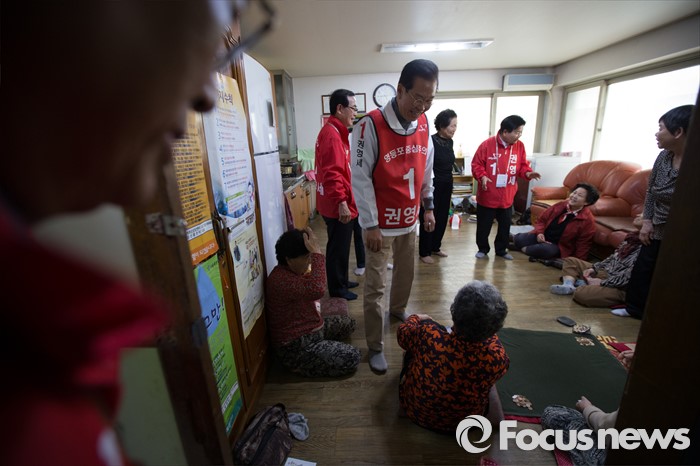 (서울=포커스뉴스) 6일 오후 서울 영등포구 대림1동 일대에서 권영세 새누리당 영등포구을 후보자가 유세를 하고 있다.