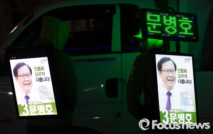 (인천=포커스뉴스) 제20대 총선에 출마한 문병호 국민의당 부평갑 후보 선거운동원들이 6일 오후 인천 부평구 부평역 인근에서 선거운동을 하고 있다.