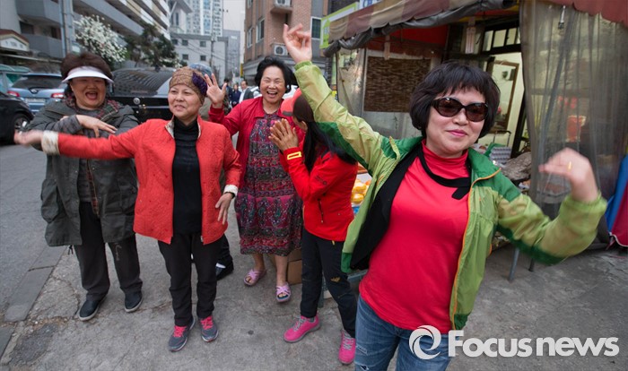 (서울=포커스뉴스) 6일 오후 서울 강동구 천호동 인근의 한 아파트 앞에서 이재영 새누리당 후보가 유세를 하는 동안 시민들이 유세 봉사자들과 함께 춤을 추고 있다.