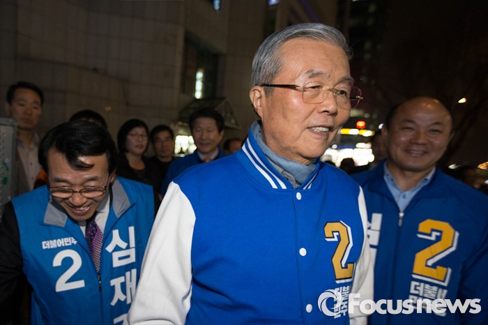 (서울=포커스뉴스) 김종인 더불어민주당 대표가 6일 오후 서울 강동구 이마트 앞에서 심재권 후보의 유세를 지원하기 위해 유세차량으로 이동하고 있다.