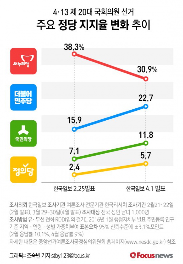 특히, 국민의당이라는 또 다른 선택지가 생김에 따라 과거 거대 양당에 실망감을 느낀 유권자들의 표를 흡수했던 정의당이 큰 피해를 입을 것으로 보인다.