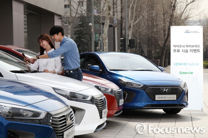 (서울=포커스뉴스) 현대자동차는 국내 대표 카셰어링 업체 그린카와 연계해 7일부터 다음달 6일까지 ‘아이오닉 하이브리드 무료시승 이벤트’를 진행한다고 밝혔다.
