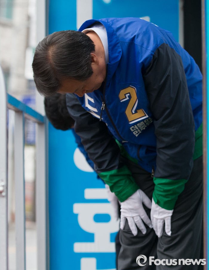 (청주=포커스뉴스) 7일 오전 충북 청주시 흥덕구 복대사거리에서 도종환 더불어민주당 후보가 출근길 시민들에게 인사를 하며 지지를 호소하고 있다.