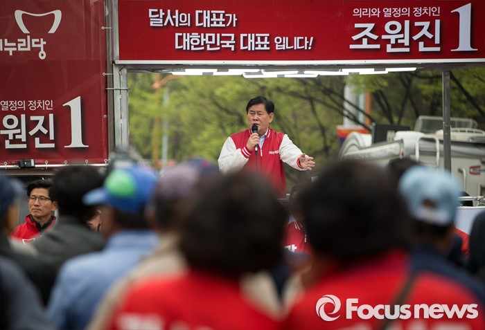 (대구=포커스뉴스) 최경환 새누리당 대구·경북 선거대책위원장이 6일 오후 대구광역시 달서구 성당동 일대에서 열린 대구지역 후보자 총집결 거리유세에서 발언하고 있다.