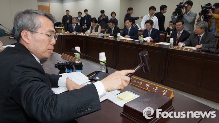 (세종=포커스뉴스) 7일 오전 세종시 정부세종청사 고용노동부 최저임금위원회 대회의실에서 열린 제1차 전원회의에서 박준성 위원장이 회의 시작을 알리는 의사봉을 두드리고 있다.