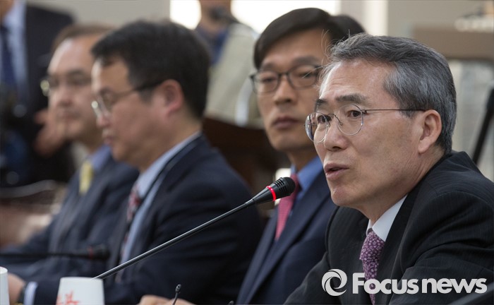 (세종=포커스뉴스) 7일 오전 세종시 정부세종청사 고용노동부 최저임금위원회 대회의실에서 열린 제1차 전원회의에서 박준성 위원장이 회의를 주재하고 있다.