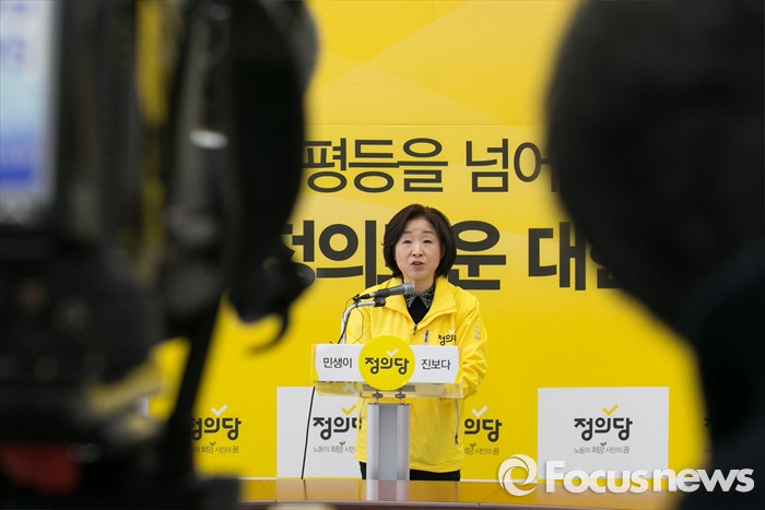 (서울=포커스뉴스) 심상정 정의당 대표가 7일 오전 서울 여의도 국회에서 총선전략 기자회견을 하고 있다.