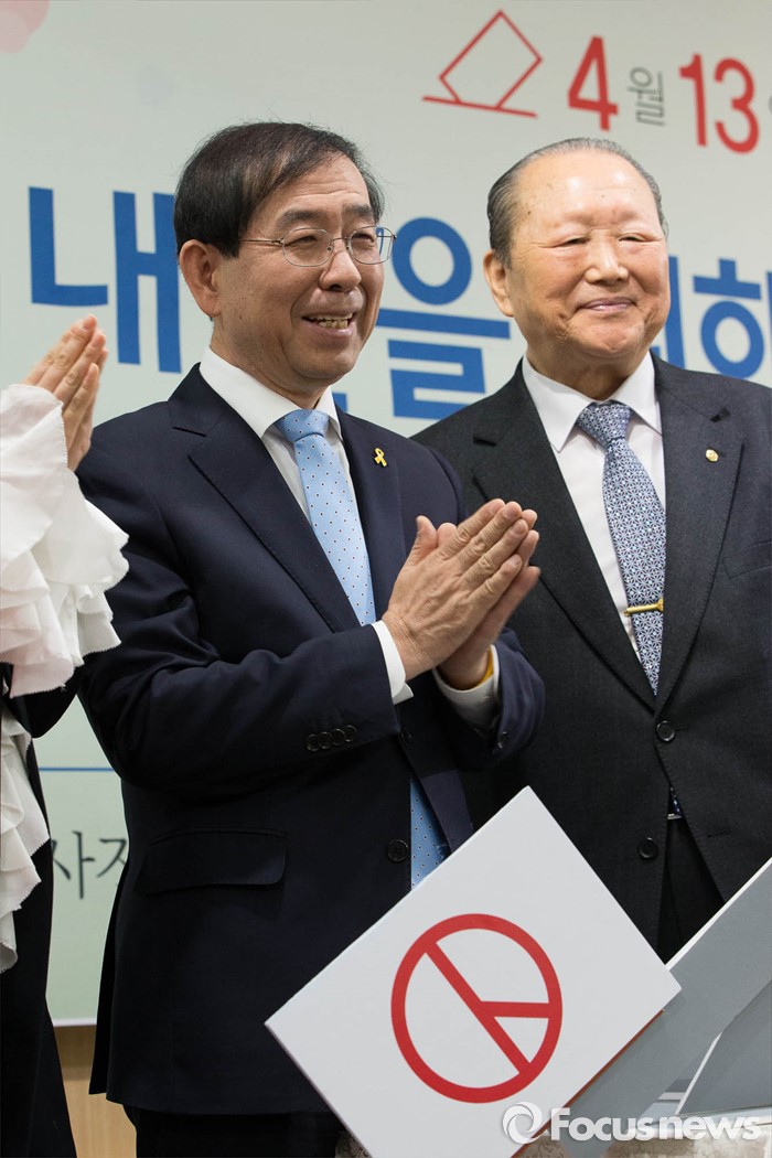 (서울=포커스뉴스) 20대 총선을 6일 앞둔 7일 오전 박원순 서울시장이 서울시청 브리핑룸에서 제20대 국회의원선거 '공명선거 및 투표참여' 퍼포먼스를 하고 있다.