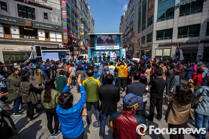 (군포=포커스뉴스) 문재인 더불어민주당 전 대표가 7일 오전 경기도 군포시 산본중심상가를 방문해 유권자들에게 이학영 군포시을 후보, 김정우 군포시갑 후보 지지를 호소 하고 있다.