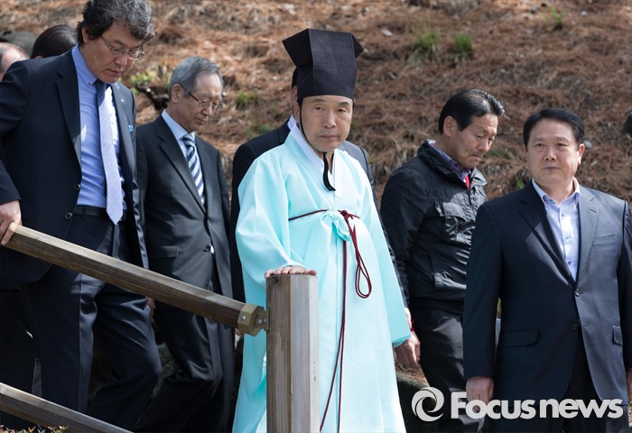 (남양주=포커스뉴스) 7일 오전 경기 남양주 다산유적지에서 손학규 전 더불어민주당 상임고문이 다산 정약용 선생 180주기 묘제·헌다례를 마치고 이동하고 있다.