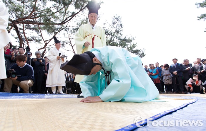 (남양주=포커스뉴스) 7일 오전 경기 남양주 다산유적지에서 손학규 전 더불어민주당 상임고문이 초헌관으로 참석해 다산 정약용 선생 180주기 묘제·헌다례를 하고 있다.