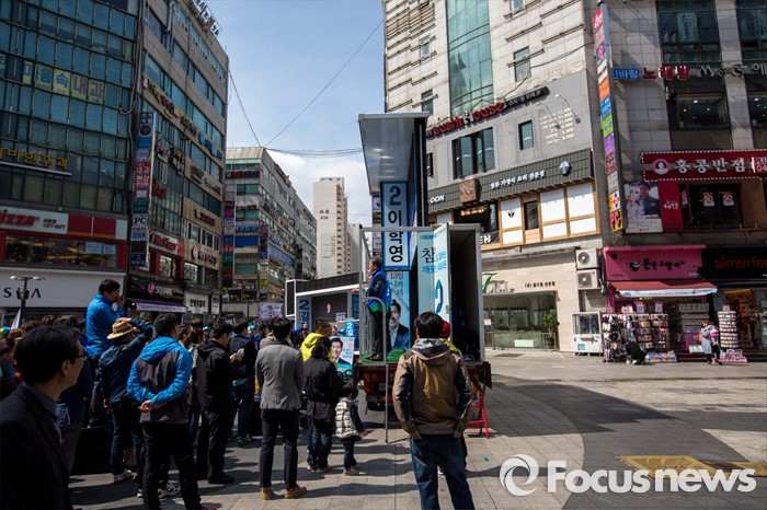 (군포=포커스뉴스) 문재인 더불어민주당 전 대표가 7일 오전 경기도 군포시 산본중심상가를 방문해 유권자들에게 이학영 군포시을 후보, 김정우 군포시갑 후보 지지를 호소 하고 있다.