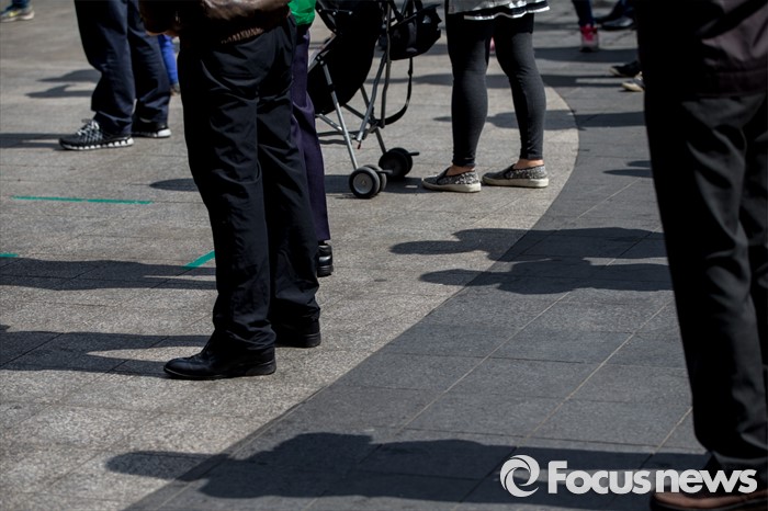 (군포=포커스뉴스) 7일 오전 경기도 군포시 산본중심상가에서 유권자들이 문재인 더불어민주당 전 대표의 연설을 경청 하고 있다.