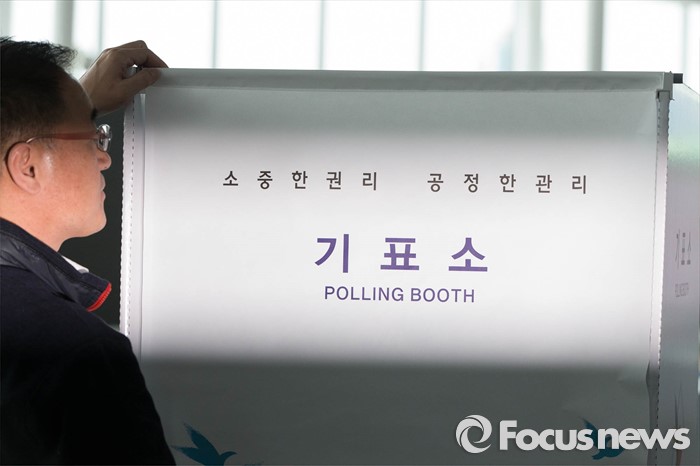 (서울=포커스뉴스) 20대 총선을 6일 앞둔 7일 오전 서울 용산구 서울역 3층 맞이방에 사전투표소가 설치되고 있다.