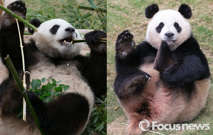 (용인=포커스뉴스) 에버랜드가 오는 21일 일반관람객에게 공개를 앞두고 판다월드에서 생활 중인 시진핑 중국 국가주석의 선물 '아이바오(愛寶)'와 '러바오(樂寶)' 판다커플을 7일 언론에 공개했다. 사진은 수컷 러바오(사진 왼쪽)와 암컷 아이바오의 모습.