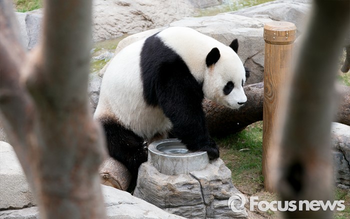 (용인=포커스뉴스) 에버랜드가 오는 21일 일반관람객에게 공개를 앞두고 판다월드에서 생활 중인 시진핑 중국 국가주석의 선물 '아이바오(愛寶)'와 '러바오(樂寶)' 판다커플을 7일 언론에 공개했다. 사진은 수컷 판다 러바오의 모습.
