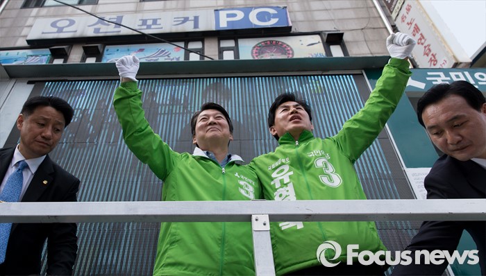 | △ 만세 외치는 안철수와 유형욱 |
